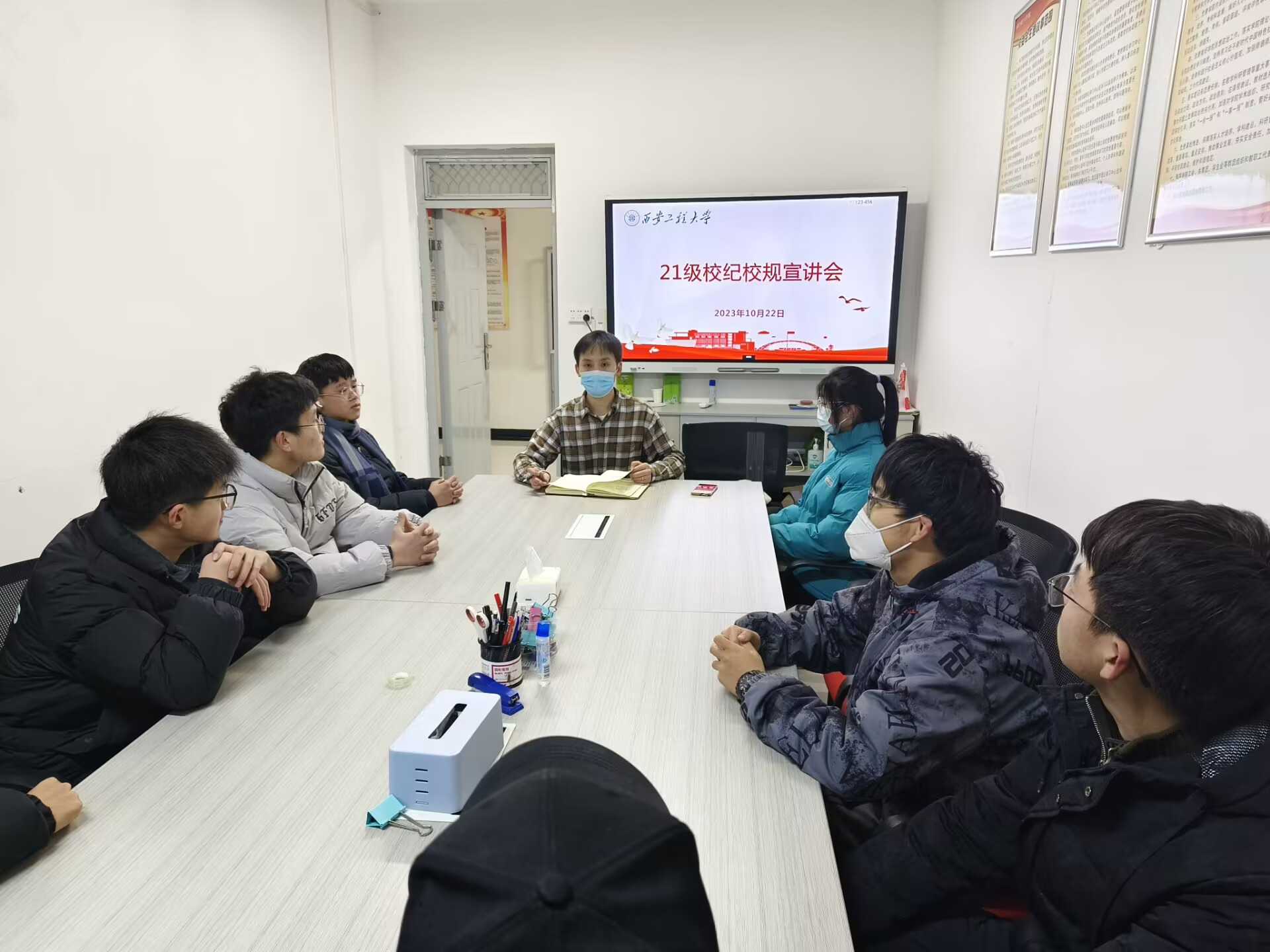 于环化楼238会议室举行学习校规校纪主题班会,21级班长团支书参加,会议由博彩投注
