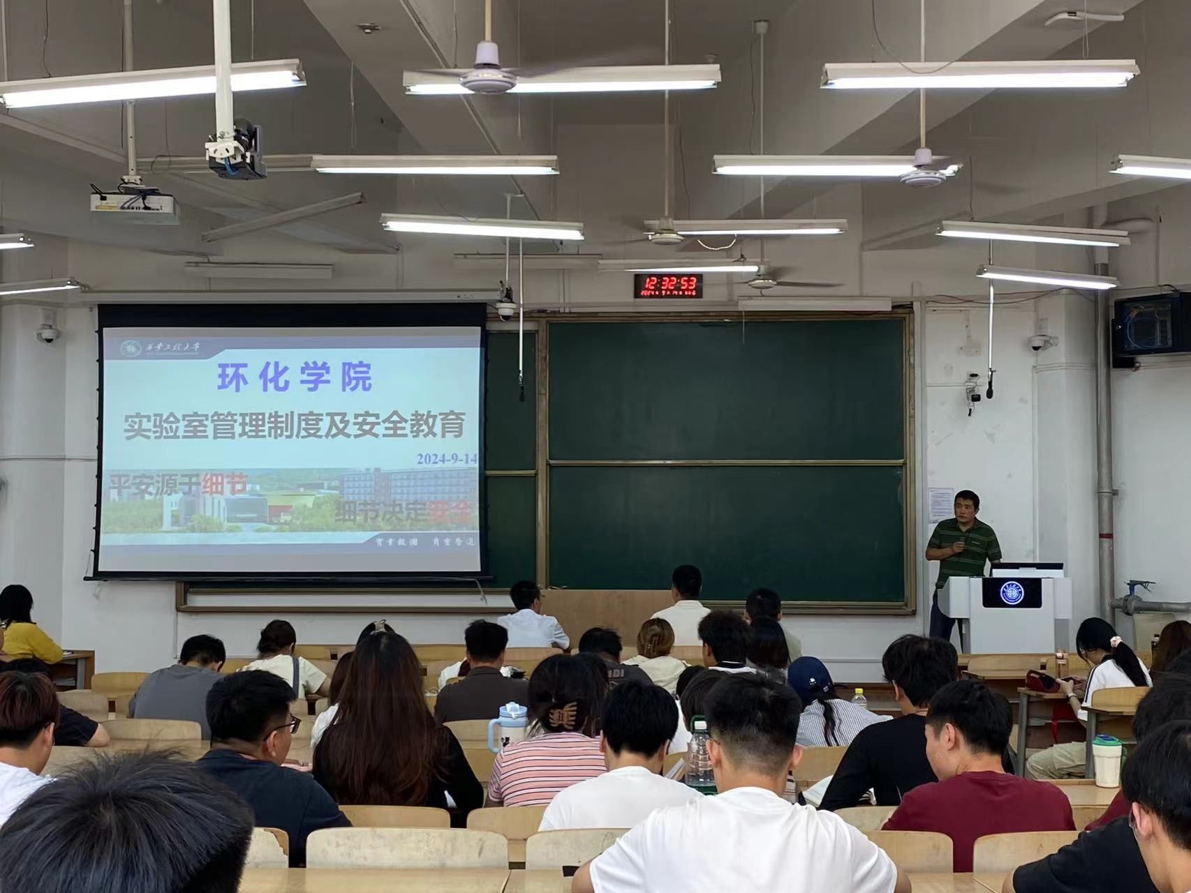 举办2024年研究生实验室安全培训会,会议邀请学院实验室中心主任于翔作题为《平安源于细节 细节决定安全》的专题报告,学院党委副书记林定武、2023级和2024级全体研究生参加会议,会议由研究生辅导员贾天昱主持。