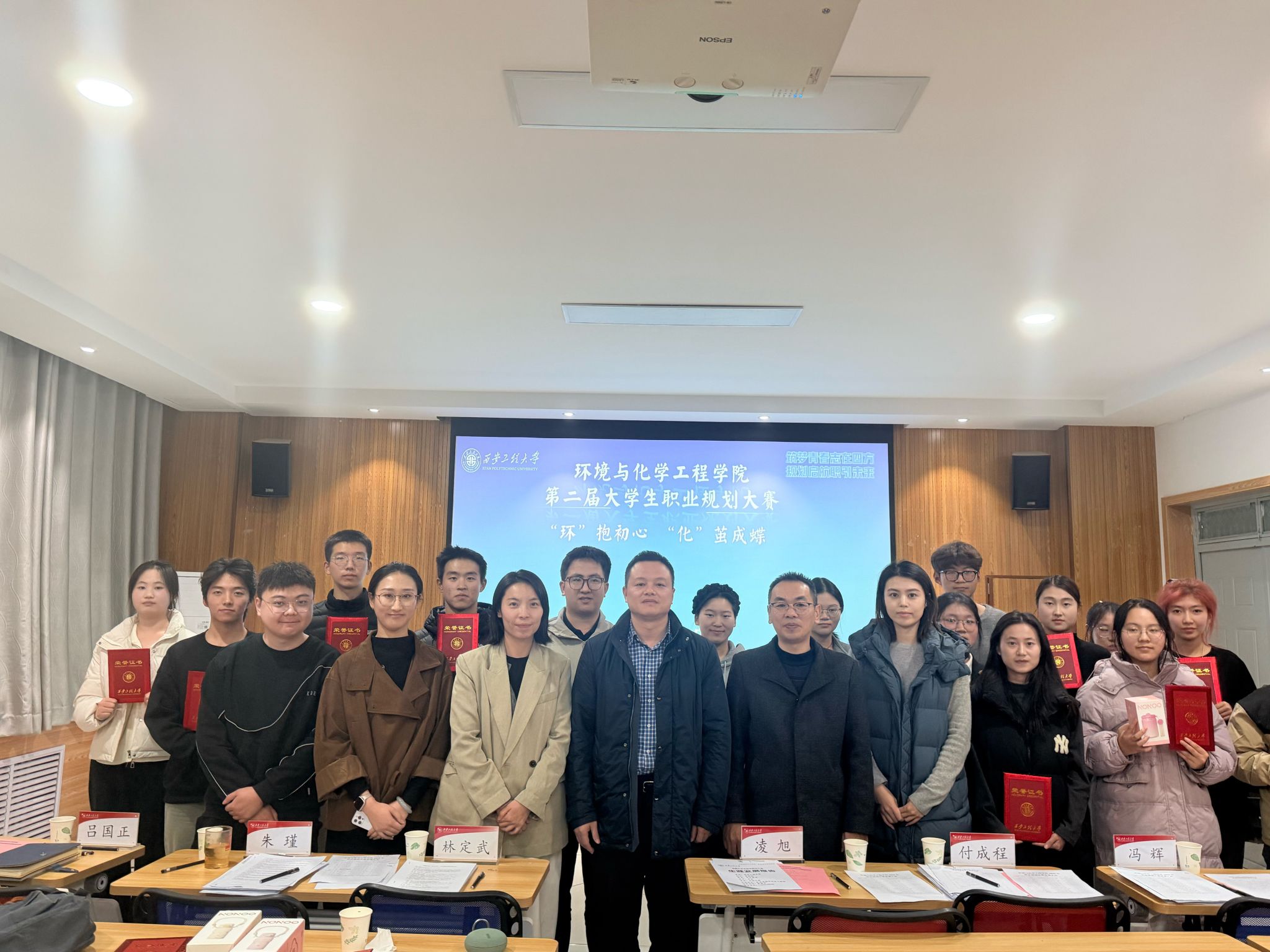 第二届“环抱初心·化茧成蝶”职业生涯规划大赛决赛在环化楼507会议室顺利举行。校团委副书记凌旭、院党委副书记林定武、校党委学工部教育管理科科长付成程、招生就业工作处冯辉、学院学工办主任朱瑾担任大赛评委。