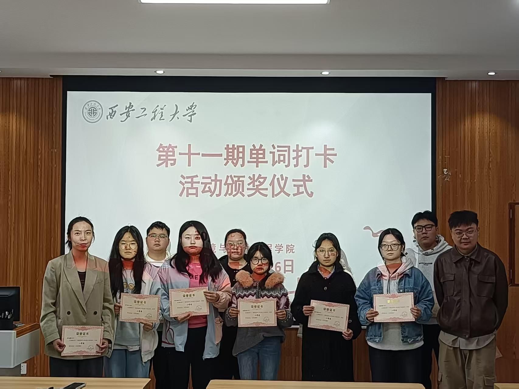 第十一期单词打卡活动颁奖仪式顺利举行。学生工作办公室主任朱瑾、2025级辅导员吕国正出席仪式并为获奖学生颁奖。