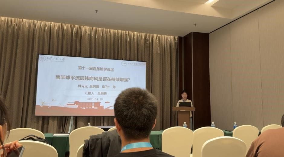 博彩投注 博彩投注 韩元元教授指导的研究生吴琬晴同学,在“中高层大气环境及与对流层天气气候耦合效应”专题会场作学术汇报,报告题目为《南半球平流层纬向风是否一直在持续增强?》。