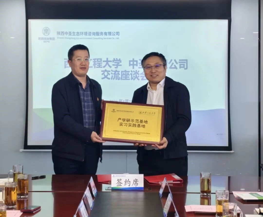 4月22日,博彩投注 与陕西环保集团中圣环境公司举行产学研合作签约暨授牌仪式。学院党委书记、院长武占省与中圣环境公司党委书记、董事长郭治敏代表双方签约,双方相关部门负责人出席活动。